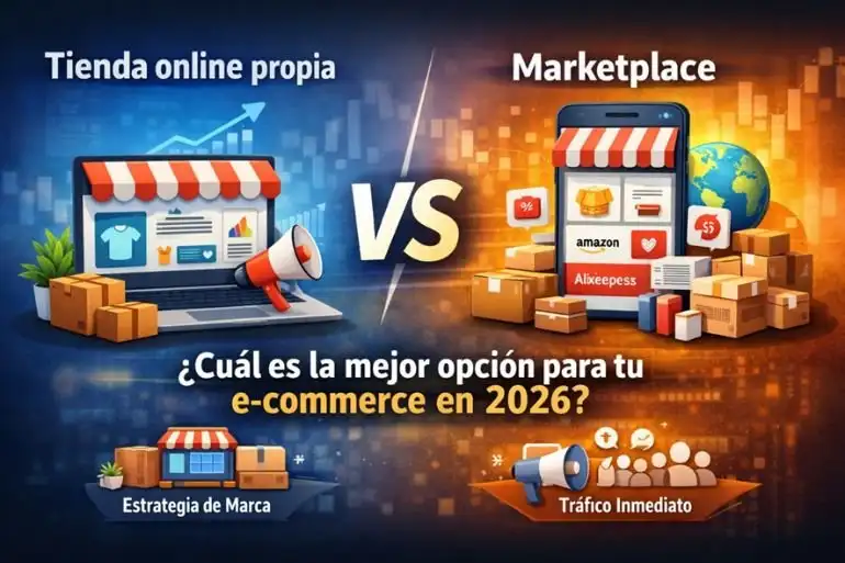 Si vendes en un marketplace, dependes de reglas que no controlas, comisiones variables y clientes que no son realmente tuyos. Si montas una tienda online, tienes control total… pero nadie te garantiza ventas si no sabes atraer tráfico.