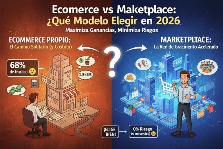Depende de tu situación. El ecommerce ofrece más control y margen, pero requiere inversión en tráfico. El marketplace reduce riesgo y permite validar producto rápidamente gracias al tráfico existente.