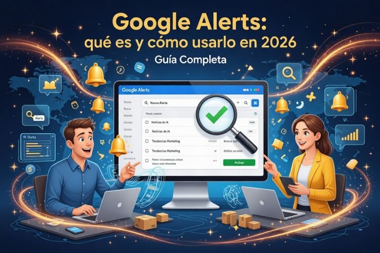 Google Alerts es una herramienta gratuita de Google que envía notificaciones por email cuando se publica contenido nuevo relacionado con una palabra clave que tú elijas. Puedes usarlo para recibir noticias, vigilar tu nombre o marca, seguir temas concretos o detectar nuevas oportunidades.