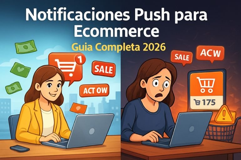 Las notificaciones push para ecommerce prometen solucionar esto: mensajes instantáneos, recordatorios, ofertas urgentes y recuperación automática de ventas.