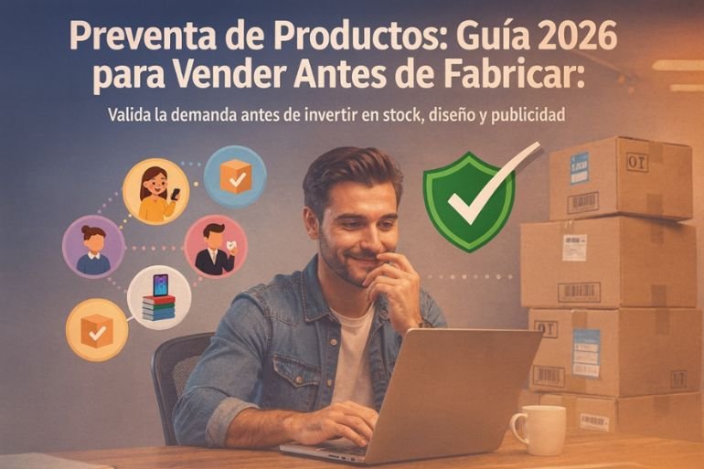 En esta guía te voy a explicar cómo vender antes de fabricar, validar sin riesgo y generar flujo de caja desde el primer día. Y no, no necesitas invertir miles en ads.