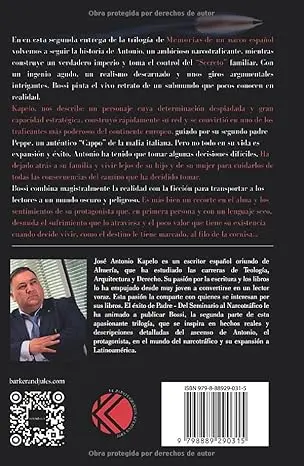 En en esta segunda entrega de la trilogía de «Memorias de un narco español» volvemos a seguir la historia de Antonio. un ambicioso narcotraficante. mientras construye un verdadero imperio s toma el control del «Secreto” familiar. Con un ingenio agudo, realismo descarnado y unos giros argumentales intrigantes. Bossi pinta el vivo retrato de un submundo que pocos conocen en realidad.