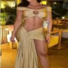 Elegancia dorada para un look de diosa El Set Dos Piezas Falda y Top está diseñado para convertirte en la protagonista absoluta de la noche. Su diseño fluido y cortes estratégicos realzan la figura femenina con el máximo glamour.